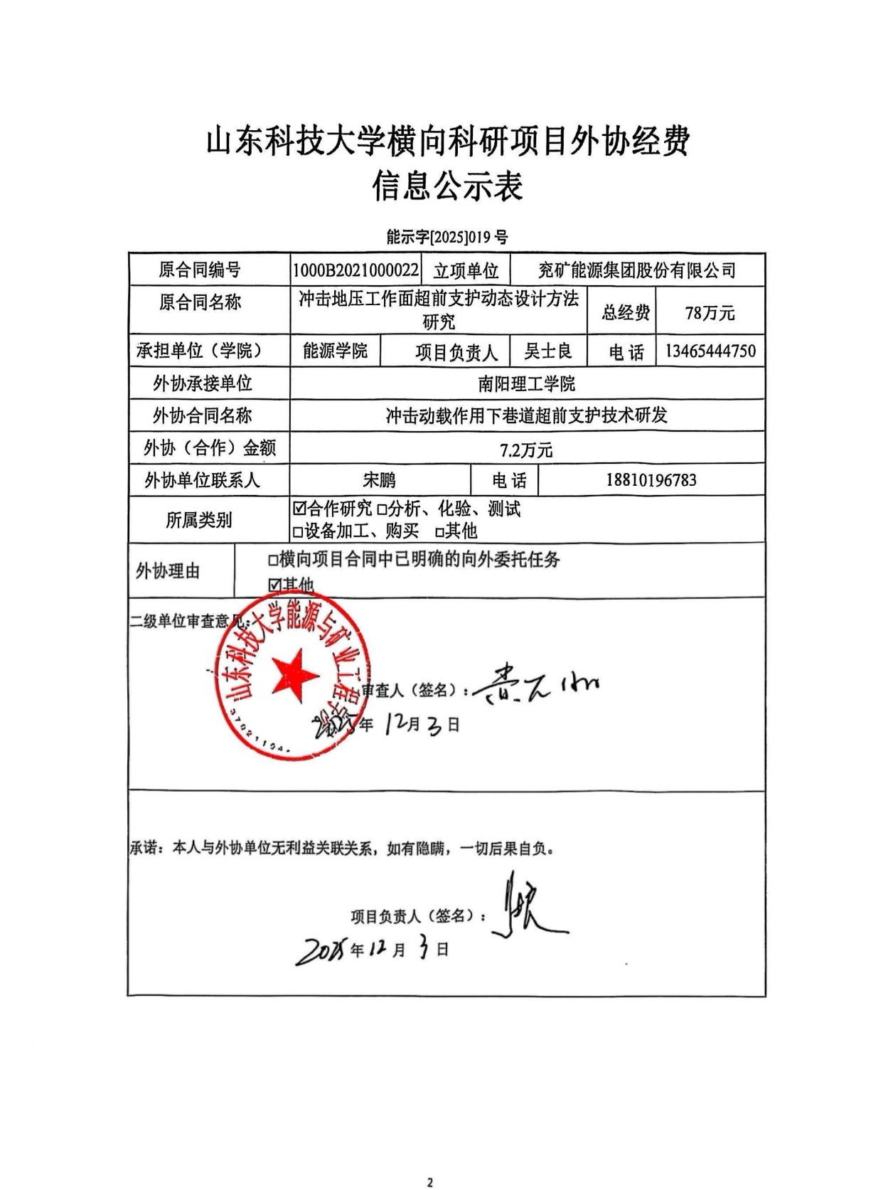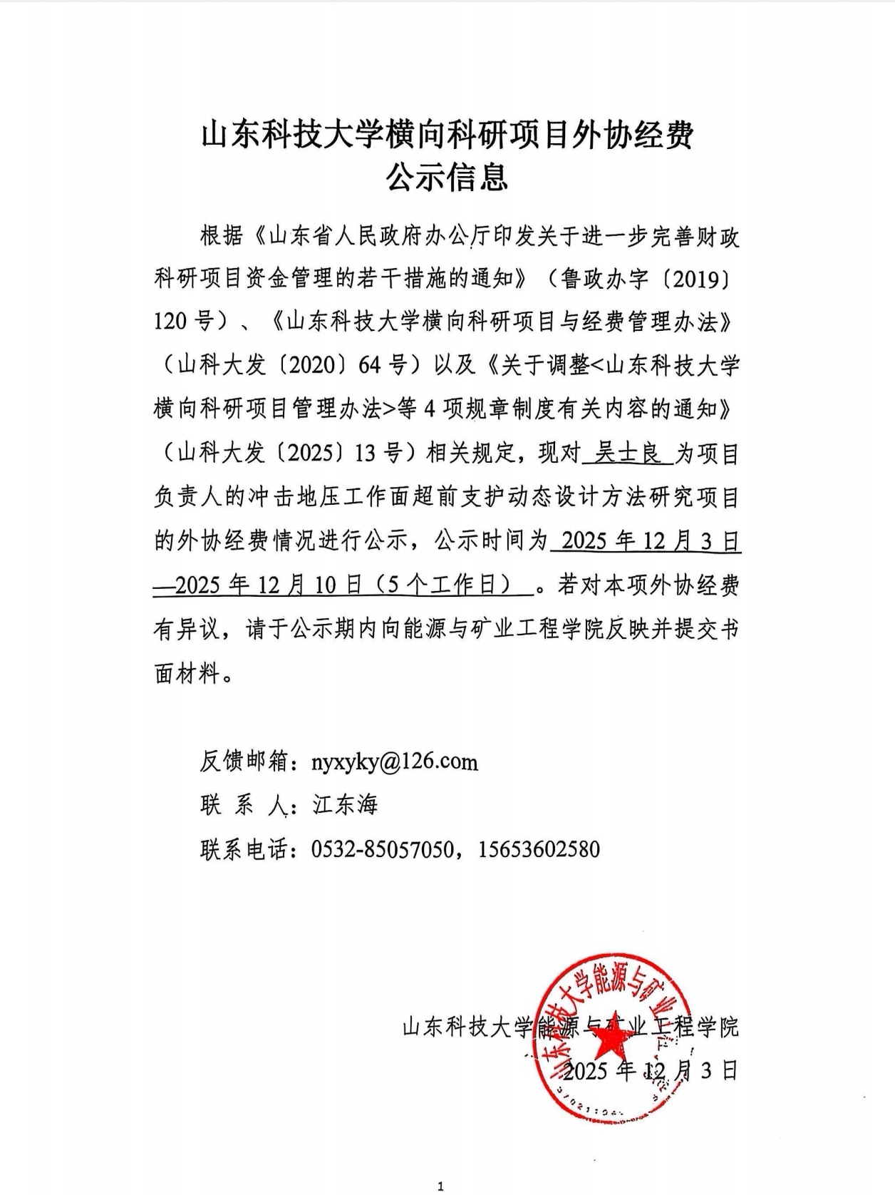 第一版主 横向科研项目外协经费公示信息