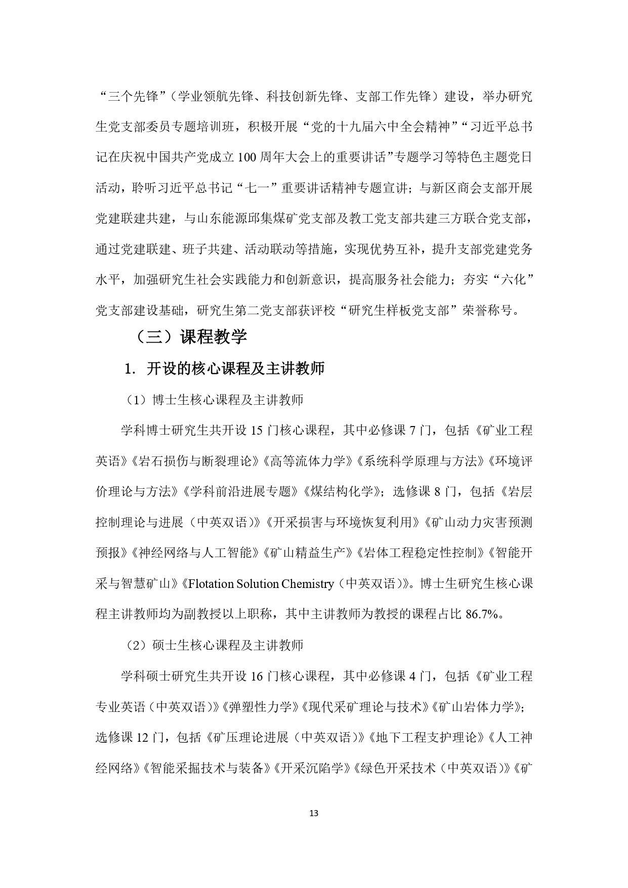 第一版主 矿业工程学科(0819)博士学位授权点建设年度报告