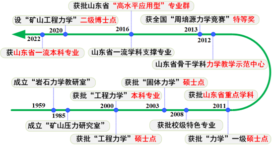 第一版主 工程力学专业传承于建校之初成立的岩石力学教研室(陈子荫教授、魏悦广院士曾任教于此)和宋振骐院士牵头成立的矿山压力研究所。我校工程力学专业是山东省首批设置该本科专业的高校之一,2000年获批工程力学硕士点、2003年获批固体力学硕士点、2011年获批力学一级硕士点,2022年设置二级博士点方向。2016年专业获批共建山东省“高水平应用型”重点专业群,2022年入选山东省一流本科专业建设点。