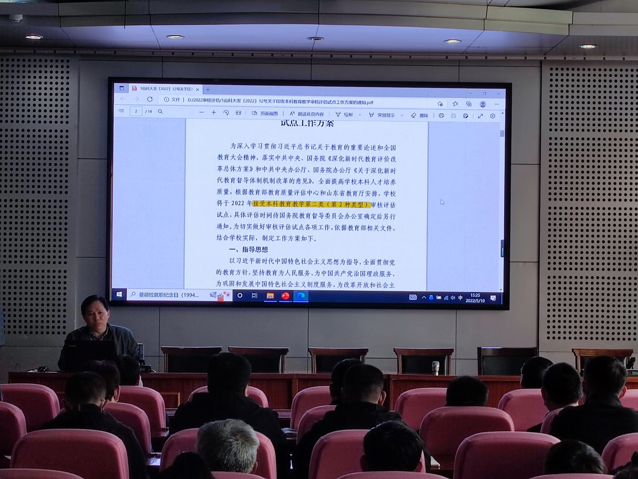 根据教育部教育质量评估中心和山东省教育厅安排,学校将于2022年接受本科教育教学第二类(第2种类型)审核评估试点,为切实做好审核评估试点各项工作,5月10日下午,学院在J4-319召开本科教育教学审核评估动员部署会,学院党委书记董桂刚主持会议。学院党政领导班子成员和全体教职工参加了会议。