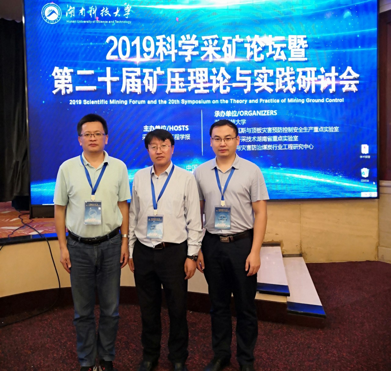 月20-22日,2019年科学采矿论坛暨第二十届矿压理论与实践研讨会在湖南省湘潭市召开,来自全国煤炭行业高等院校、科研院所和企事业单位的200余名专家和青年学者参加了研讨会。矿业学院院长助理赵同彬,教师代表张新国、辛林一行3人参加了本次研讨会,并做学术报告。