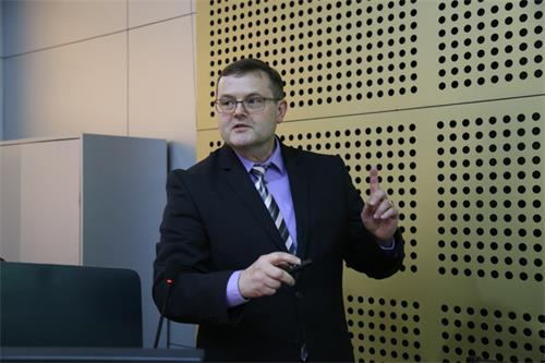 Petr Konicek教授做了题为《坚硬煤层长壁工作面钻孔泄压爆破对超前应力场演化的影响研究》的报告。他回顾了减压爆破发展历程,向大家介绍了自然采矿条件、应力释放爆破、应力释放的评估、地应力测量等问题,分析了应力爆破的主要目标、去应力岩石爆破的技术条件,并通过数据表格描述爆破过程中的应力变化,通过具体事例演绎钻孔泄压爆破对超前应力场演化的影响机理。