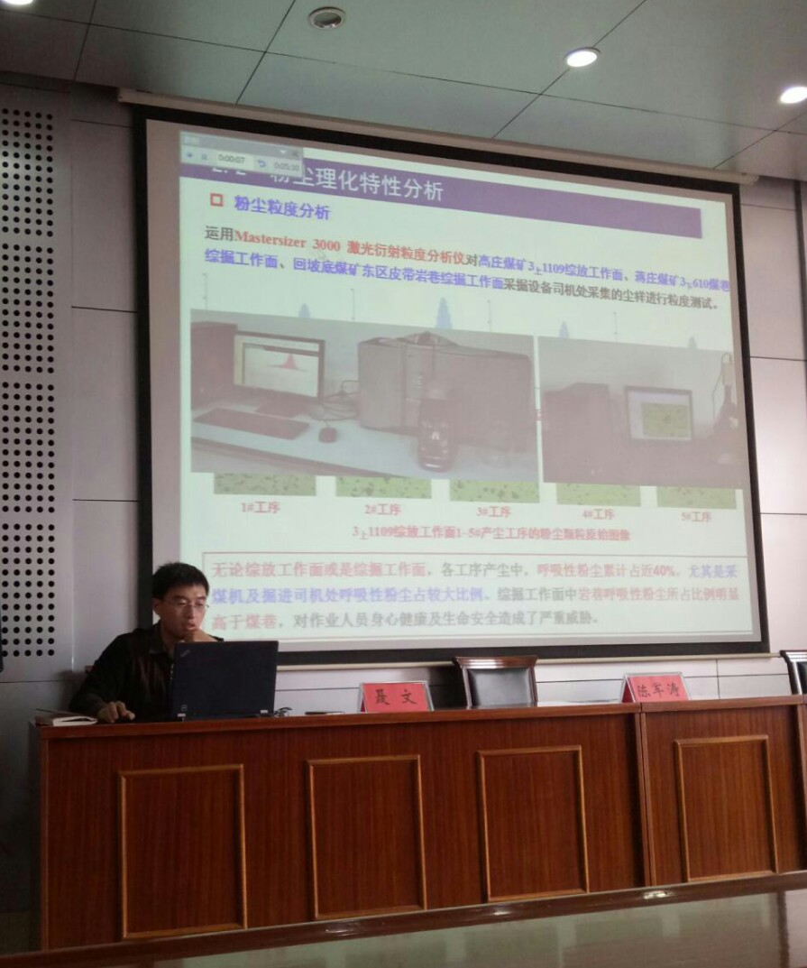 5月9日,矿业与安全工程学院在319报告厅召开“学术活动日”第六期讲坛。会议由学院教师陈军涛主持,学院教师聂文、任大伟先后作了“矿井综合机械化采掘工作面高效控除尘技术与装备研究”、“精益管理在矿山企业应用初探”的报告。学院6位老师及采矿、安全等专业的60余名博士、硕士研究生参加此次学术会议。
