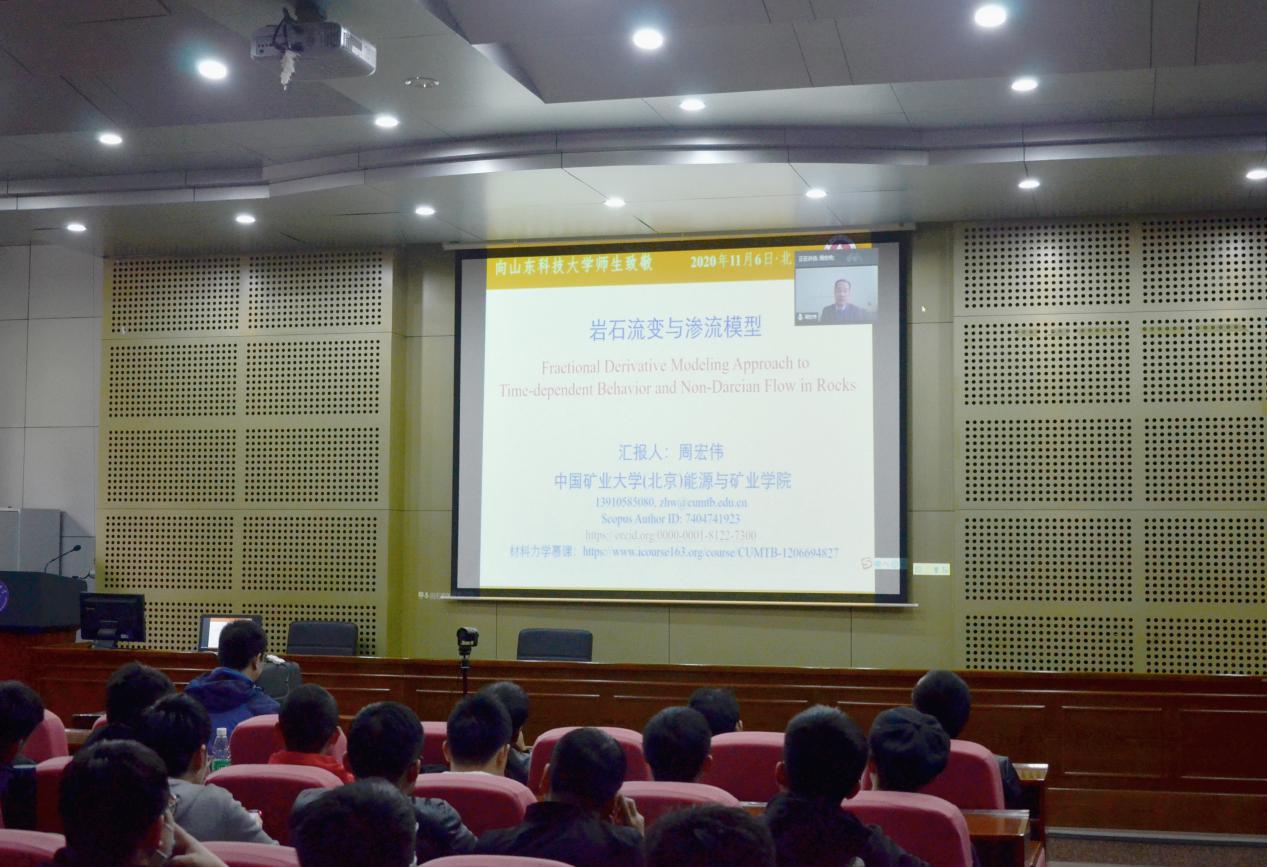 本期邀请了中国矿业大学(北京)能源与矿业学院院长周宏伟,作题为“岩石流变与渗流模型”的学术讲座,学院教师、研究生和本科生参加了讲座,第一版主 院长陈绍杰主持。