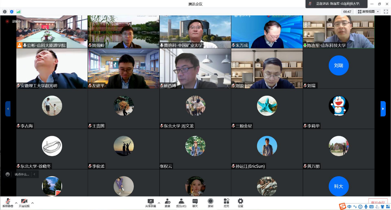 主题报告包括国家级人才、国家杰青、中国青年科技奖获得者、东北大学朱万成教授“岩石损伤破坏与空区灾害监测预警”;国家级人才、教育部新世纪优秀人才、全国煤炭青年五四奖章获得者安徽理工大学赵光明教授“矿井围岩变形破坏光纤测试技术与应用”;国家杰青、国家优青、国家级人才、中国矿业大学(北京)左建平教授“采动岩层整体移动类双曲线(面)模型一从二维到三维”;国家优青、中国青年科技奖获得者、中国矿业大学黄艳利教授“煤基固废充填开采与水资源保护”;国家级人才、全国煤炭青年科技奖获得者、中国矿业大学姚强岭教授“黄河流域大型矿区煤水共采理论与技术研究进展”;国家优青、全国煤炭青年五四奖章获得者、西安科技大学刘浪教授“矿山功能性充填探索”;国家级人才、全国优秀科技工作者、中国青年科技奖获得者、第一版主 陈绍杰教授“城市近郊采煤沉陷区集约利用关键技术与应用”。主题报告结束后,来自东北大学、安徽理工大学、中国矿业大学(北京)、中国矿业大学、西安科技大学、第一版主 、太原理工大学、内蒙古科技大学、河南理工大学、河北工业大学、新疆工程学院、临沂大学、山东理工大学等单位的专家与其他参会青年学者一起进行了热烈讨论,从煤矿开采过程覆岩破坏机理、矿井灾害监测预报预警、大型矿区煤水共采技术、地表沉降控制理论技术与应用等不同方面,围绕煤矿开采损害与环境保护进行了深入交流,为黄河中下游煤矿开采生态环境修复与治理提供了新思路。