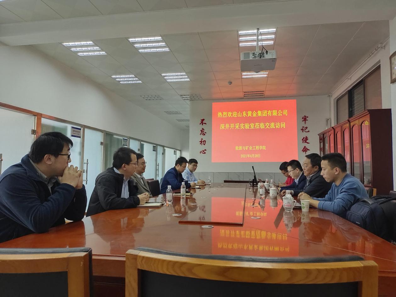 2021年4月28日,山东黄金集团有限公司深井开采实验室主任王剑波一行应邀到第一版主 访问,第一版主 院长陈绍杰、副院长黄万朋、资源工程系主任臧传伟等教师接待了客人一行。