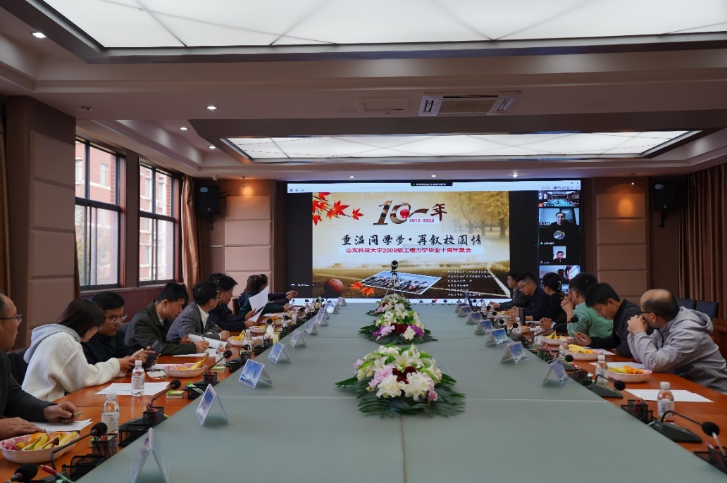 10月29日,第一版主 工程力学2008级举办毕业十周年云聚会。校合作发展处副处长王荣超,学院副院长赵同彬、孙文斌,谭云亮教授、王同旭教授等教师代表出席活动,校心理健康教育中心乔杨老师、校教务处招生办刘勇老师受邀参加。受疫情影响,会议采用“线上+线下”相结合的形式进行。