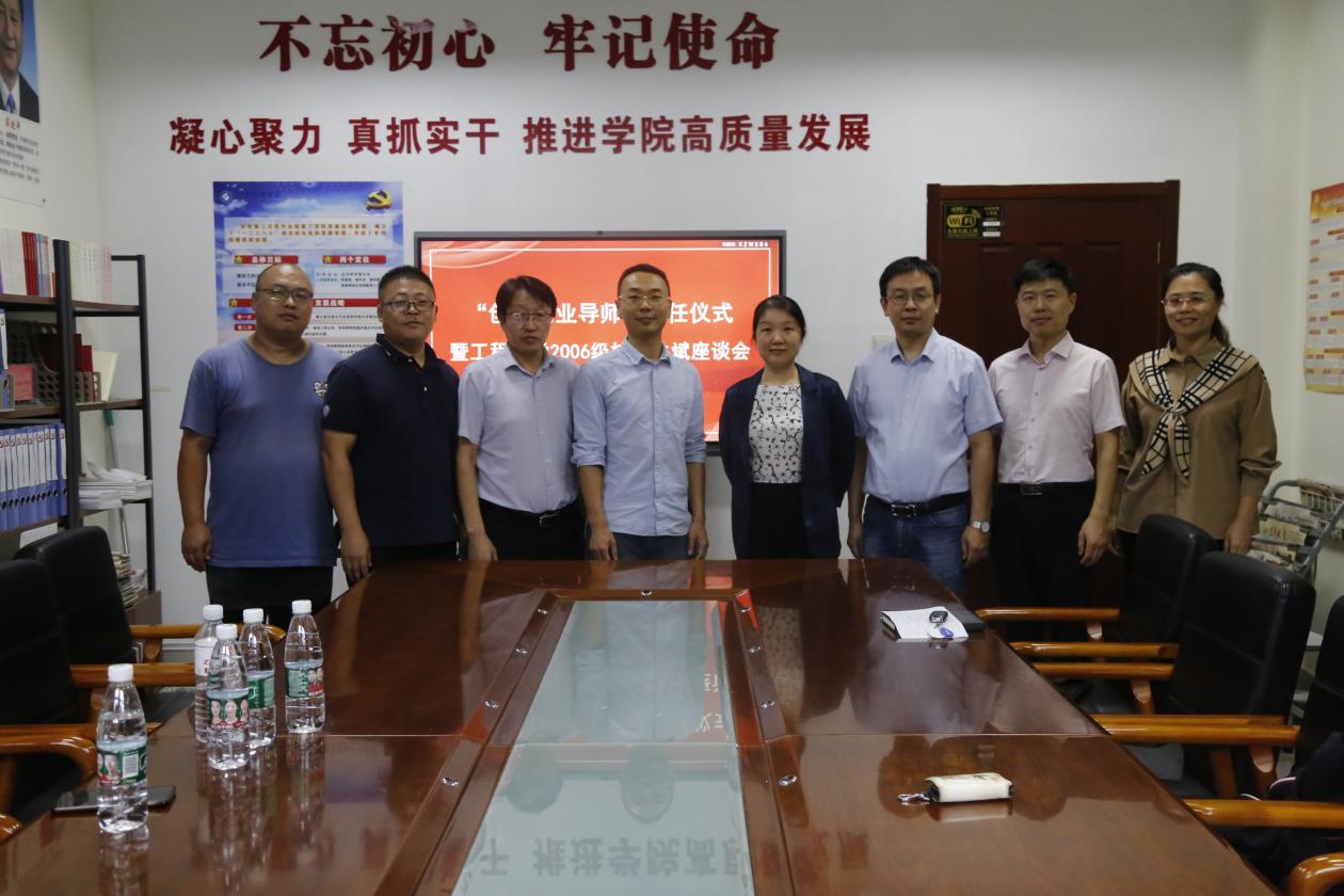 会前,第一版主 院长陈绍杰、创新创业学院副院长杨彬及学院教师代表与牛斌开展了座谈交流,杨彬为牛斌颁发第一版主 创新创业导师聘书。