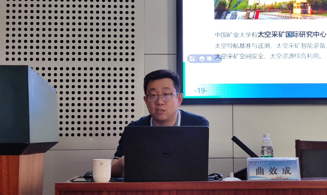 曲效成讲解了矿产资源在经济社会发展的重要性及国家出台的“强国战略”“一带一路”“‘十四五’规划”等重大举措,建议既要继续挖掘浅部的矿产资源,还要朝着“深地、深海、深空”三个方向进行深度开发。他结合自己丰富的工作经验,对煤炭环境生态化、开采智能化和去高碳化等开发前景进行了阐述,就井下无轨胶轮车为例,展示了无线技术、云计算和大数据的实际综合应用,切实提升智能化发展,推动绿色矿山的建设。同时,他结合自身创业的经历,希望同学们要学会独立和自我管理,拒绝浮躁,抵制诱惑,提升自身竞争力。