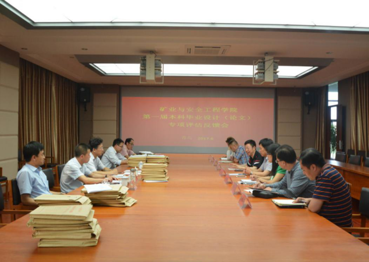为提高本科教学质量,加强本科毕业设计环节的质量监控,6月12日,矿业学院召开了第一届本科毕业设计专项评估会议,对近两年来本科毕业设计(论文)质量进行评估。莅临本次专项评估的专家有新汶矿业集团设计研究院有限公司总工程师陈瑞峰、山东丰源远航煤业有限公司北徐楼煤矿总工程师张晓明、山东省徽山湖矿业集团崔庄煤矿矿长余进荣、青岛慧润企业管理咨询有限公司总经理张进忠、中国石油大学(华东)教授周博、中国石油大学(华东)副教授黄小光。矿业学院院长谭云亮、副院长刘伟韬、院长助理赵同彬、教科办及各系主任参加了专项评估的见面会及反馈会。会议由副院长刘伟韬主持。