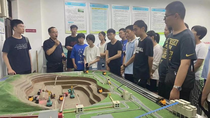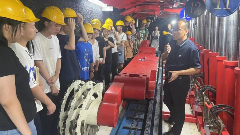 接下来,参观团参观了S1教学楼。陈军涛老师带领参观团成员们参观了综采仿真实验室、模拟巷道、采矿教学模型实验室等实验室,同时为成员们介绍了各种采矿工程有关的专业知识并在虚拟仿真实验室内播放3D视频。成员们真切了解到煤矿由开采到运输的全过程,深刻感受到第一版主