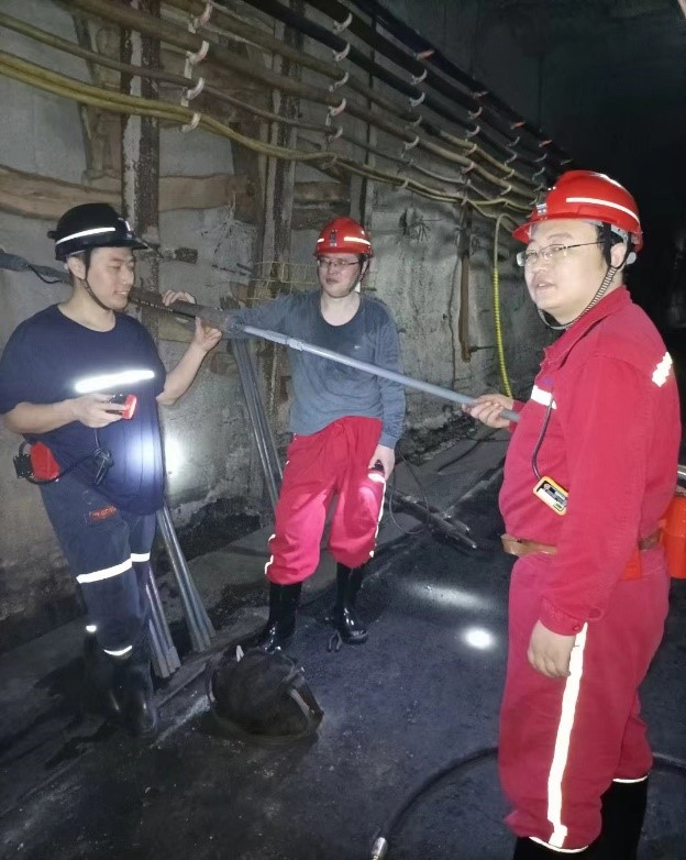 白庄煤矿的复工复产,离不开矿业工程国家级实验教学示范中心教师的技术指导。自2022年5月份以来,中心教师陈军涛、黄万朋和刘江伟等教师在水害防治、切顶支护等方面对9701工作面的煤炭开采进行了交流,亲临现场一线进行技术指导,加班加点为煤炭安全开采保驾护航,保证了白庄煤矿的如期复工复产,积极保障全省的能源安全。